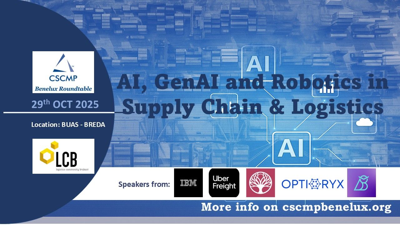 On October 26 2023, seventy supply chain professionals and students gathered in Breda at the Innovation Square of the BUAS campus to attend event on GenAI, AI and Robotics. LCB, ESCF and CSCMP Benelux hosted the exclusive event designed for Senior Management, as well as Operations Managers seeking to gain valuable insights on this hot topic. Read the full event report.